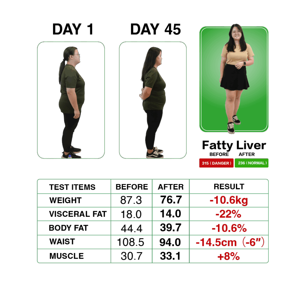 When I saw my health report, the high visceral fat, body fat, and fatty liver score truly worried me. I knew I needed help.